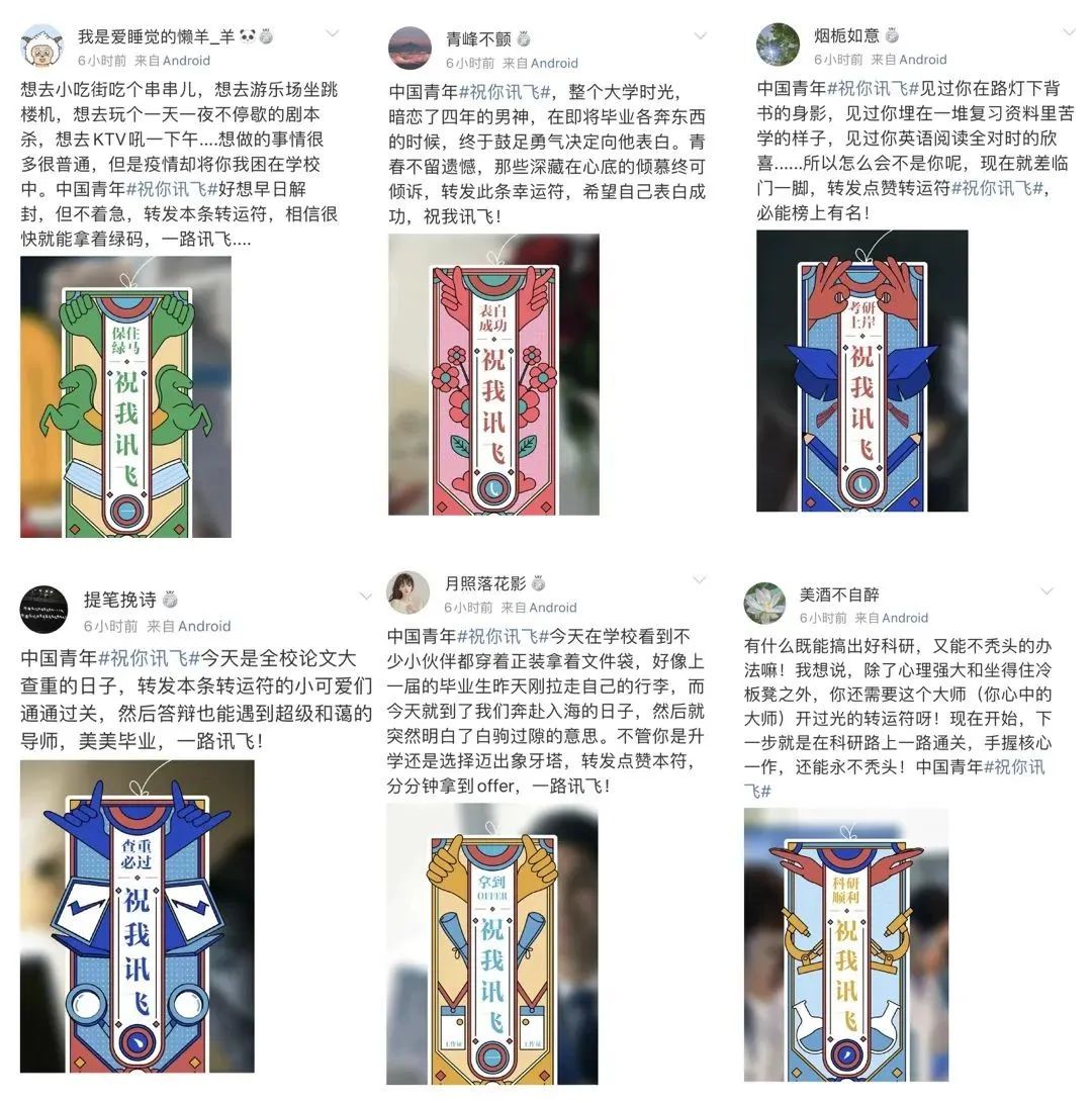 疫情时代,最重要的是“保住绿马,祝我讯飞”;考研大军必备考研符“考研上岸,祝我讯飞”;时常陷入无限自我怀疑的科研人,必须来一贴好运符“科研顺利,祝我讯飞”;即将迎来史上最难毕业季的毕业生,人手一张“查重必过,祝我讯飞”;脱单比脱贫的当年青年人刚需好运符“表白成功,祝我讯飞”…