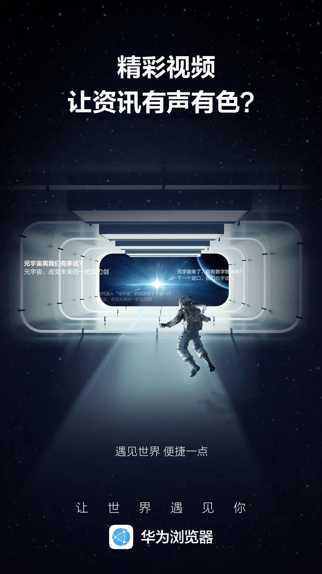资讯不仅优质、专业而且还能动起来!当女主手中静态新闻报纸里元宇宙资讯突然动态化呈现,映入眼帘的不再是静态的文字,而是一幅沉浸式的元宇宙动态景象。幕后推手正是华为浏览器升级版本新功能——“视讯”。