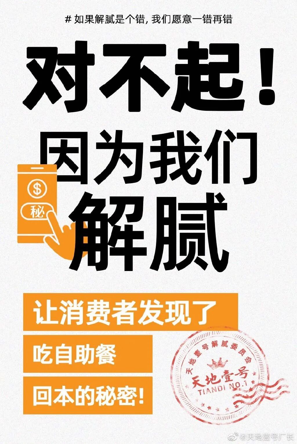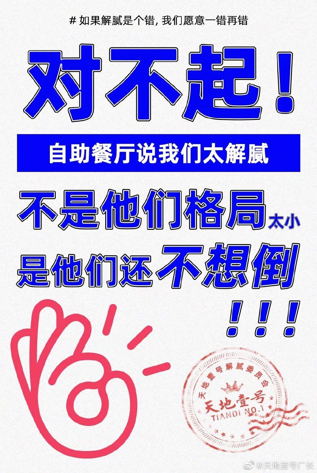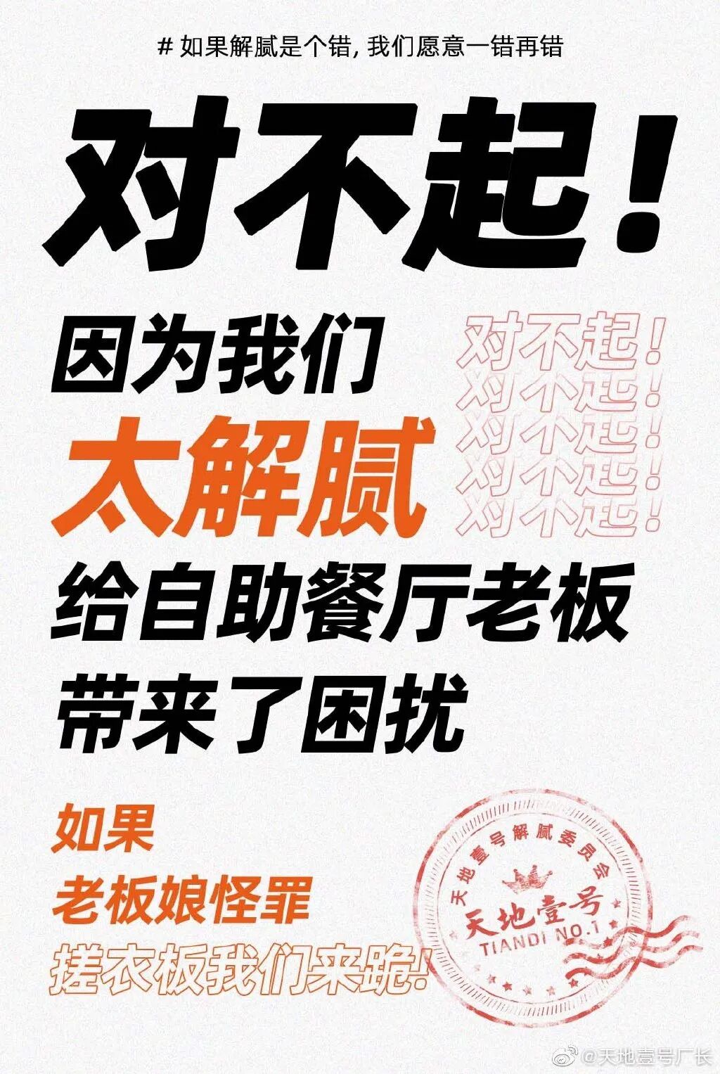 无辜躺枪的天地壹号,反其道而行之地发布了一系列道歉海报,表示