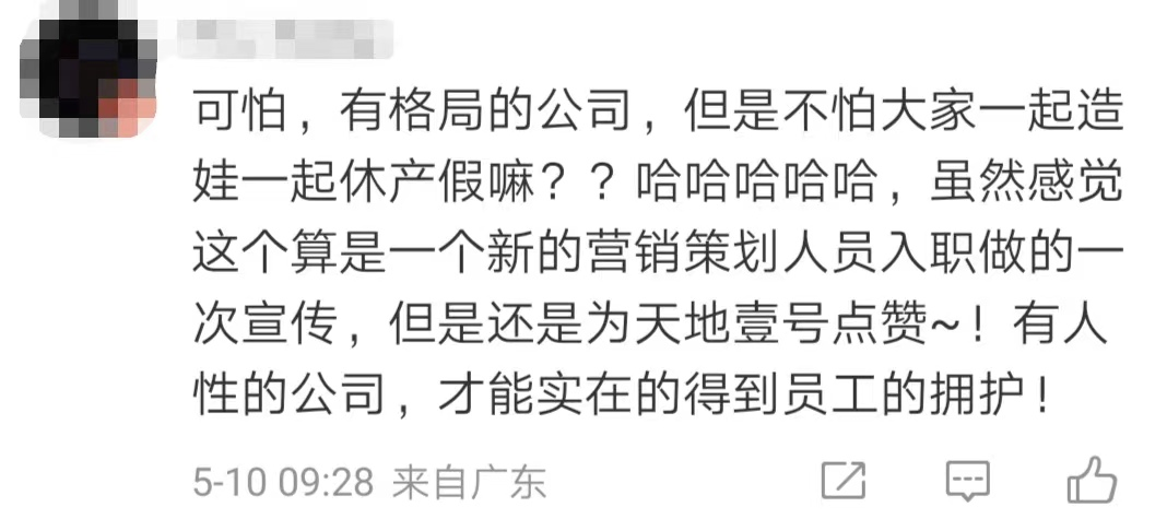 而且,要我说,“谈谈情,说说爱,造造娃”只是天地壹号的一个幽默表达,又不是给员工下达的硬性KPI。