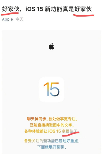 文案要是有传唱度的话,果味文案就适合口头传播,朗朗上口简单易记。iPhone 13 Pro发布后,“强得很”、“了不得”这两句文案,就被网友调侃土到极致就是潮。苹果为iOS15写了一段文案:好家伙,iOS15新功能真是好家伙