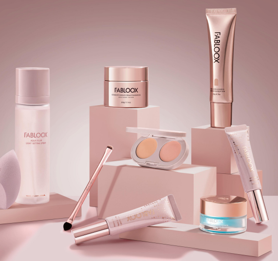 fabloox品牌推出的定妆喷雾、零感粉饼、妆前啫喱、眼部遮瑕、唇部精华,与明星单品粉霜组成馥碧诗系列美妆家族,为中国女性解锁肌肤发光的奥秘,成为纯净美妆界耀眼的国货新星。