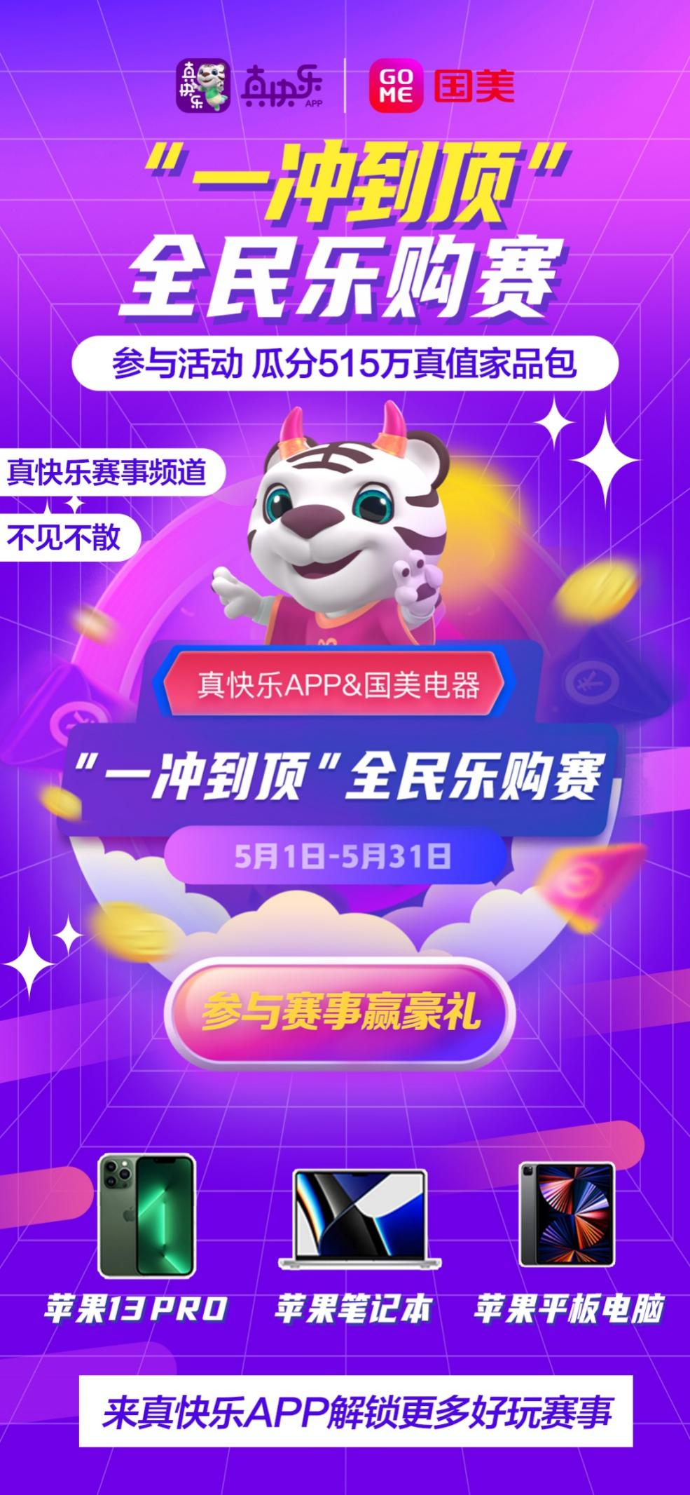配合“把真快乐带回家”的理念,此次真快乐APP515家·生活节发起了“一冲到顶”全民乐购赛等趣味娱乐赛事,通过作品热力值有希望赢得iPhone 13 Pro等大礼,不仅让目前居家抗疫的青年有了更快乐的消费体验,也进一步激活了消费者参与活动的热情。