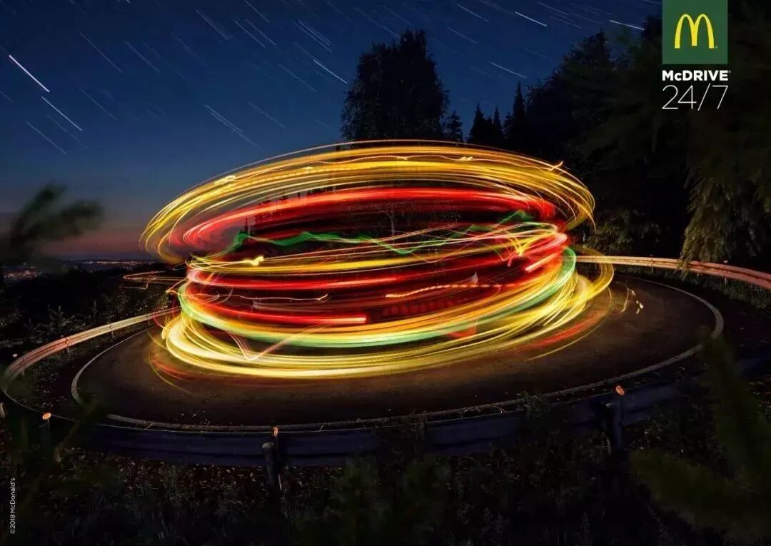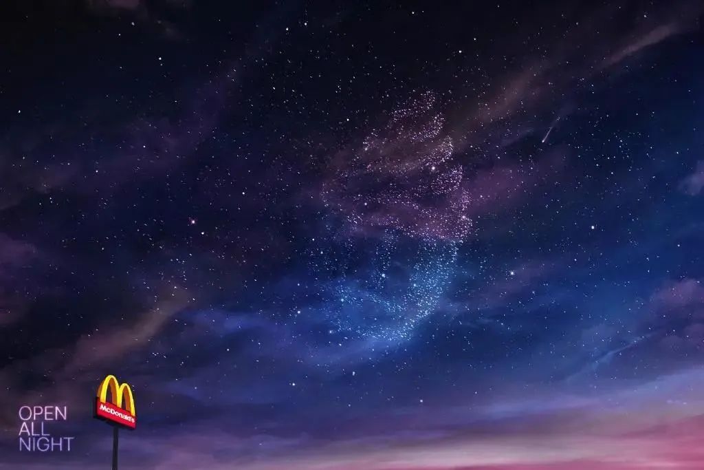 利用星空的星星点点组成了我们熟悉的麦当劳产品。