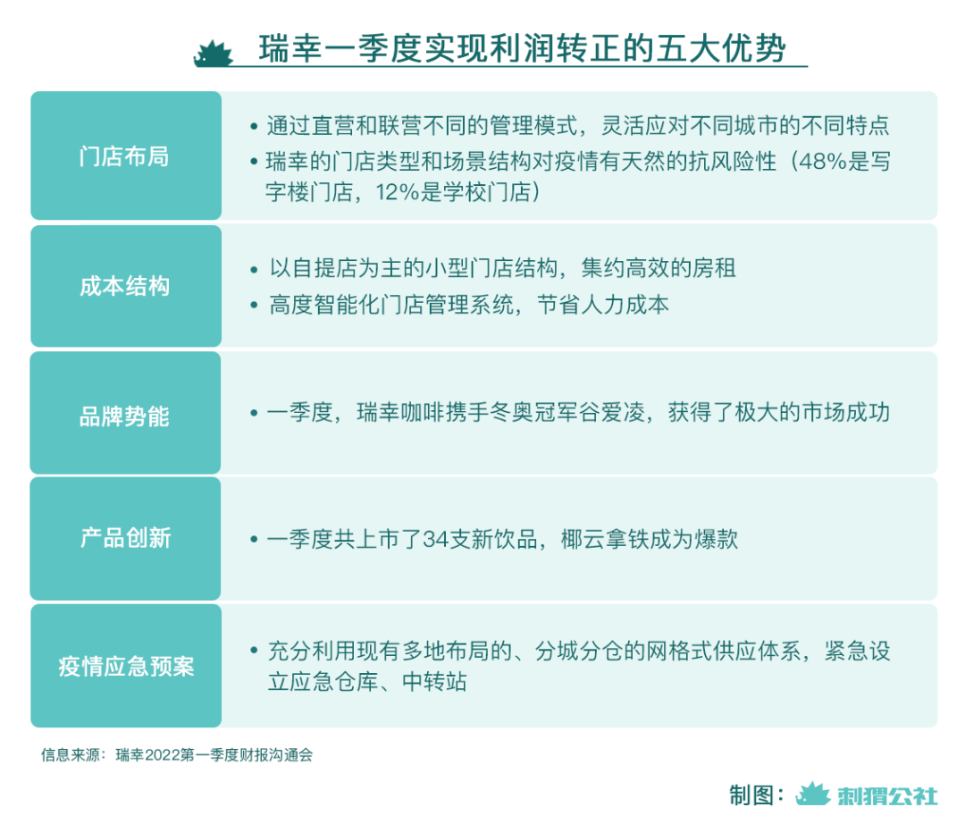 既然瑞幸已经成为“新瑞幸”,那我们就不再重提“老瑞幸”时期的旧话。仅看第一季度,郭谨一将瑞幸的成功总结为五点:科学的门店布局、合理的成本结构、品牌势能助推、持续的产品创新能力和疫情下完善的应急预案。