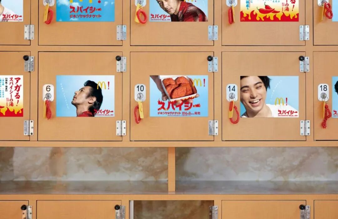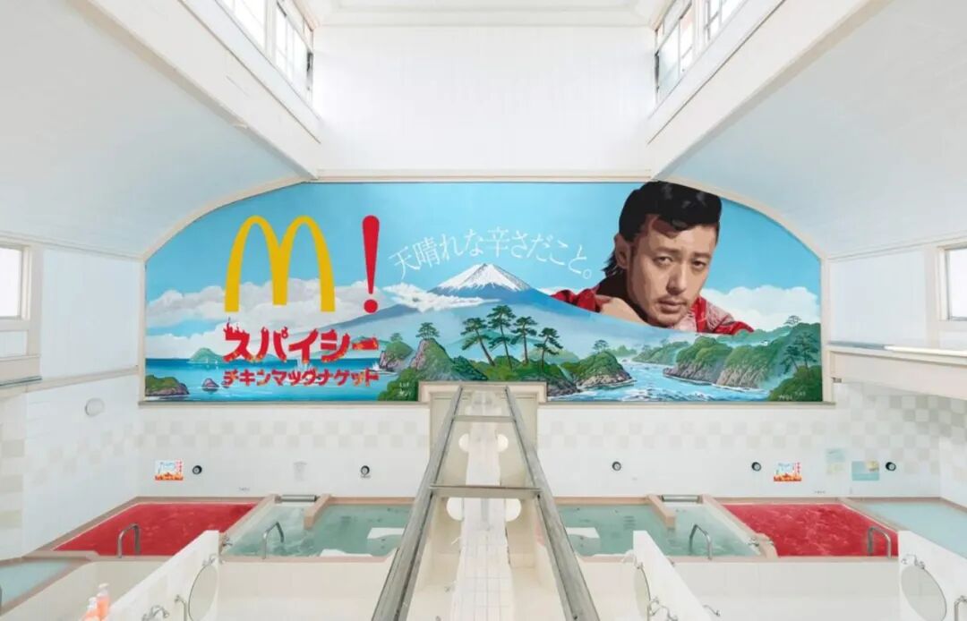 其实,这是日本麦当劳和东京高圆寺澡堂【小杉汤】联名,并邀请了日本知名演员小田切让作为代言人,为的是宣传新品麻辣鸡块。
