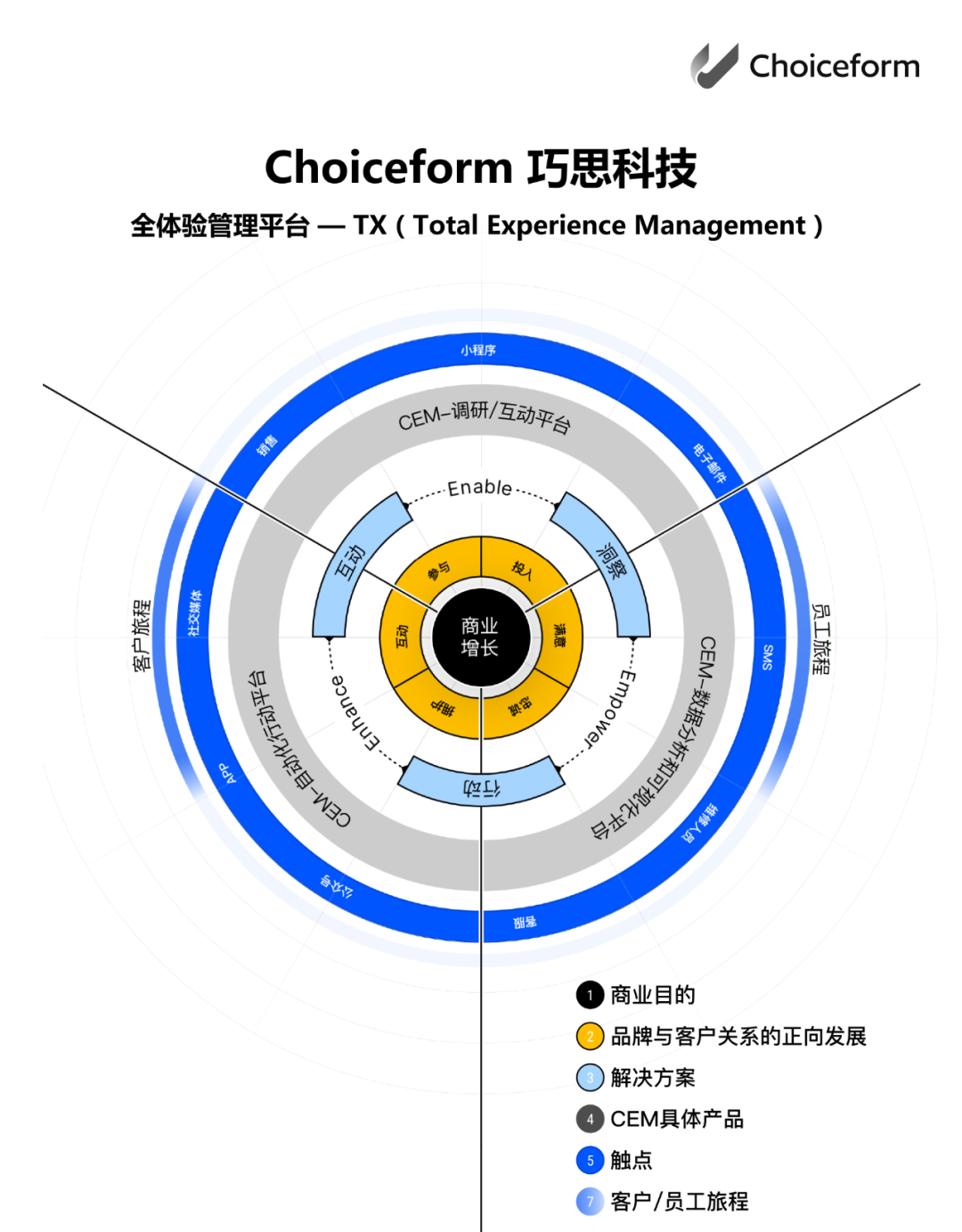 "不以增长为目的的CEM都是‘耍流氓’。"Ronan最后强调,对于CEM厂商来说,必须与品牌的目标高度一致,围绕客户的需求不断升级,与客户共同进步。“我们的目标是希望客户能够通过CEM实现业绩增长,而不仅仅停留在洞察、报告、KPI等方面。”这也正是Choiceform巧思科技升级为“TX”的初衷。今年,Choiceform巧思科技将继续改进“TX”框架上的产品模块,并推出能符合CEM不同发展新阶段的产品。”
