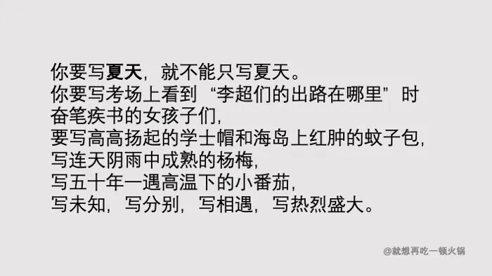 除了一句“太会了!”俺也说不出啥了,不过这还没完,评论区也开始卷起来了。才华出众的网友们纷纷用“你要写......就不要只写......”的句式来了场“命题作文式”的大比拼。小编在评论区沉浸式阅读良久,挑选了以下50条文案,大家来一块品品。