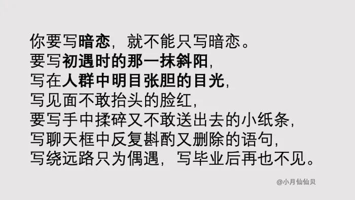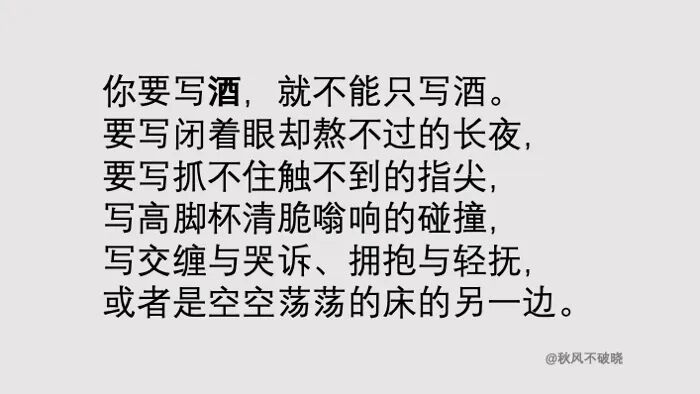2、擅用意向和敏于捕捉生活细节:分明要写风,却写起了树梢弯度、湖面波纹;分明要写遗憾,却写尽了那天晚霞的美好和昔日的欢愉。中国人更偏向婉转、内敛的表达方式,给事物蒙上一层难以被复制的浪漫与美感。大自然、生活中的一切仿佛都能成为我们情感的载体,所谓美好的文字不过是人们用心生活过的印记罢了。