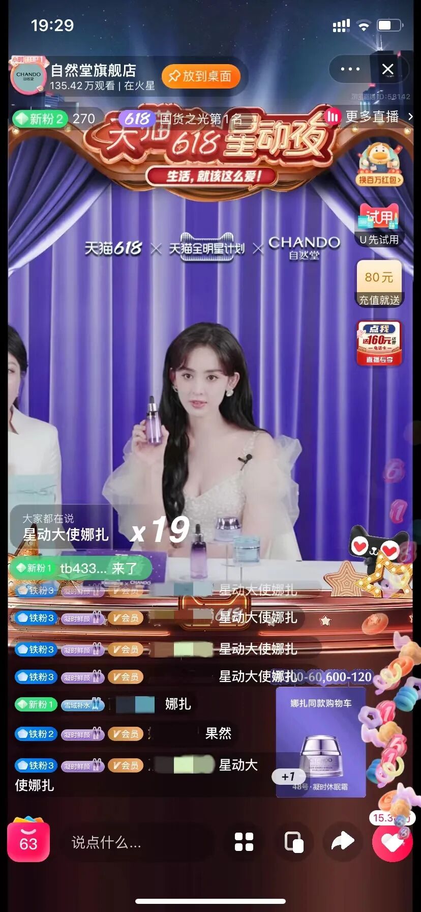 5月31日晚,自然堂携手天猫618全明星直播盛典“天猫618星动夜”,邀请自然堂全球代言人娜扎做客天猫旗舰店直播间,为当晚20点整现货开售强力造势。