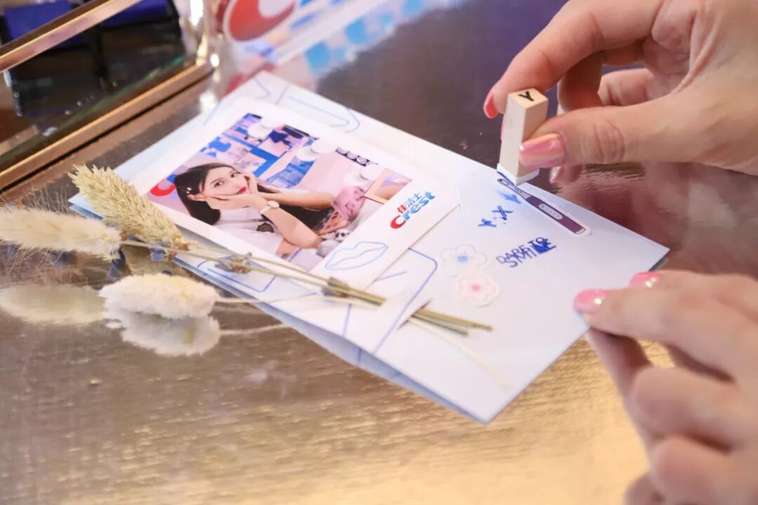 用户在礼品互动区不仅能够体验佳洁士系列产品的魅力,同时还能够获得专业摄影师免费拍照、DIY手工明信片、创意贴纸及产品同款樱花味香水卡等福利作为“小惊喜”。