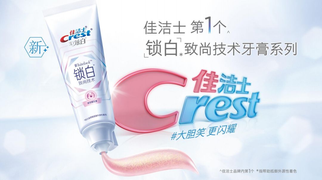 借助不断的研究探索,佳洁士发明了“专利美白成分”,依靠品牌领先的长信技术为用户解除烦恼,让用户唇红齿白,大胆笑,更闪耀。