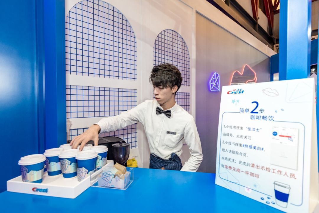 在会场的入口处,佳洁士为参加活动的用户搭建了一间咖啡厅,免费提供咖啡,为远方奔波而来的用户接风洗尘。
