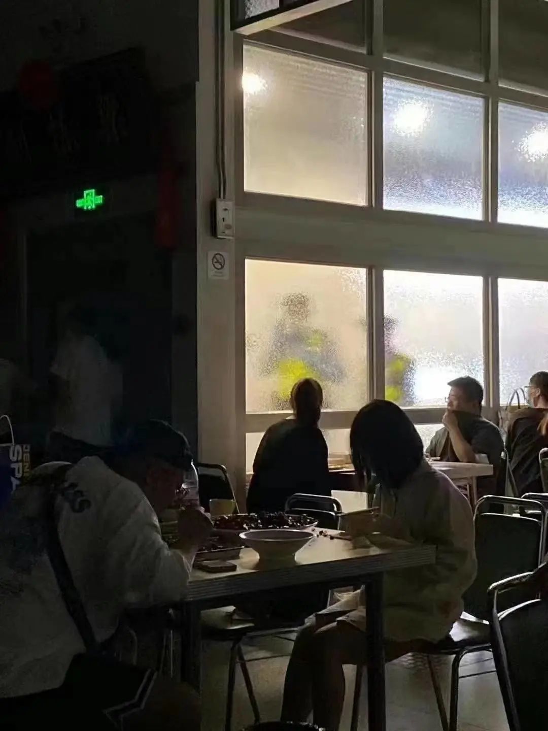 店外巡逻人员模糊的身影