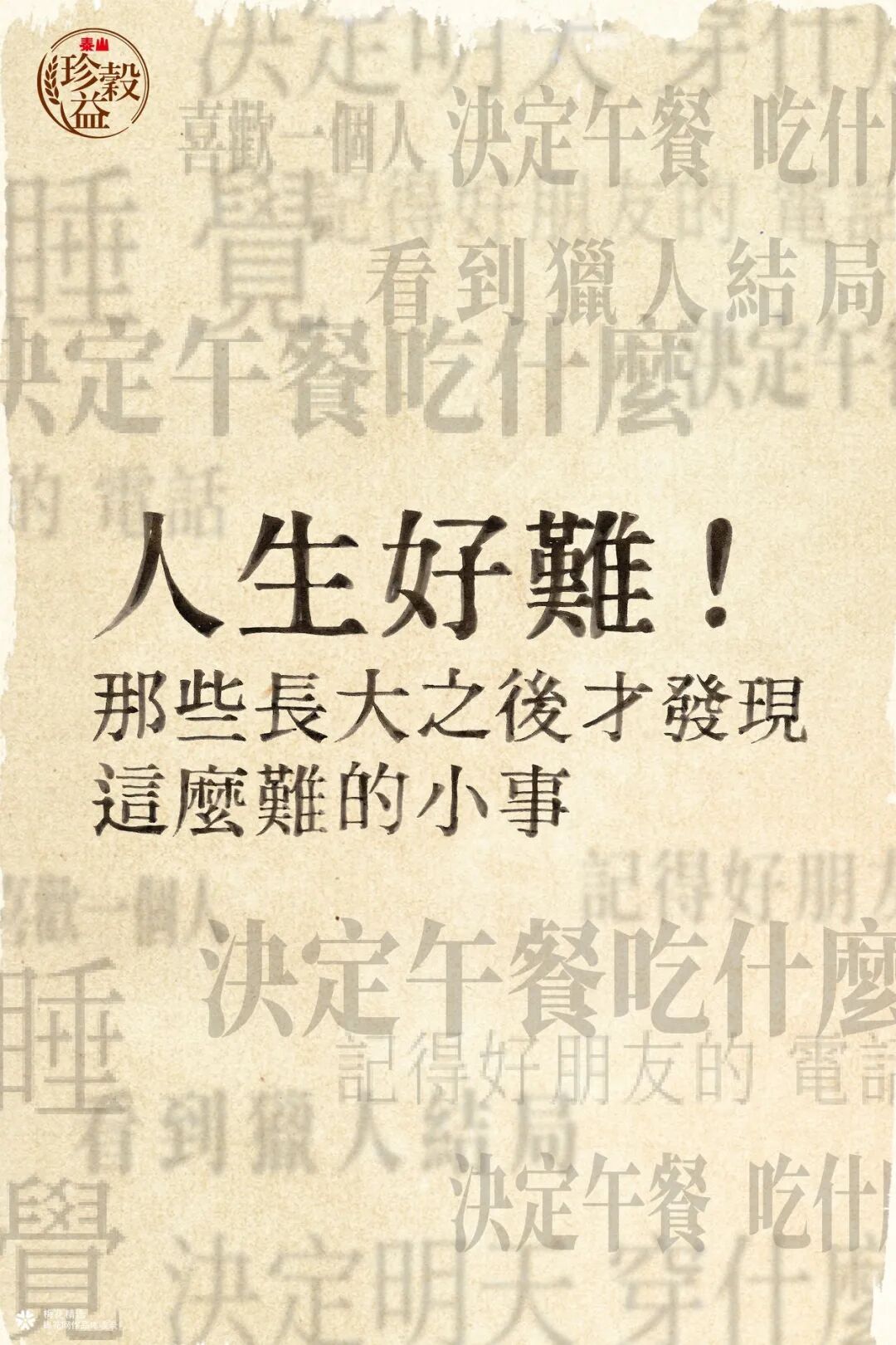 珍谷益以常说的“人生好难”为切入点用那些长大后才发现很难的小事与产品联系起来,引出人生这么难,至少让珍穀益方便粥把吃变得简单一点吧。03