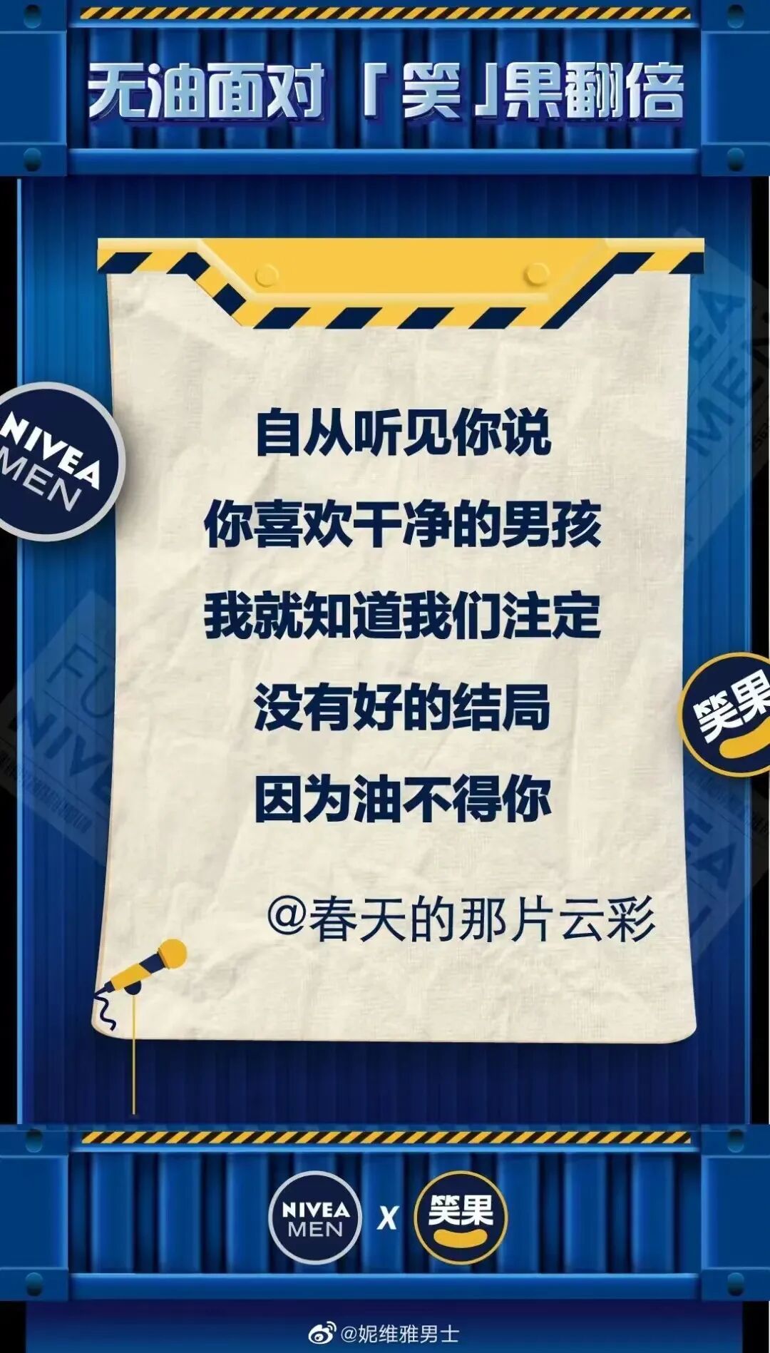 同时,妮维雅男士积极搭建微博话题#无油面对 “笑”果翻倍#,为受众营造自由发声阵地。还邀笑果兄弟成立“解油虑帮帮团”,在微博话题页发表他们的“油”虑故事,由此激发了网友更多的讨论和参与,为话题增加众多优质的UGC内容。