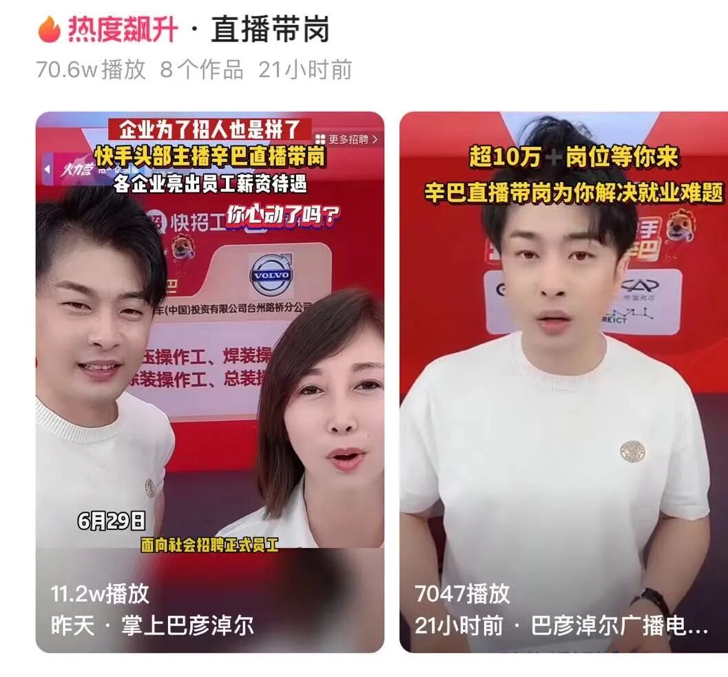 以往在快手“带岗”的多是劳务行业从业者,属于垂类达人。辛巴和劳务行业不沾边,他是带货达人、顶流主播,这两点直接决定了本次直播性质的不同。辛巴入局相当于跨界,并将“带岗”活动推向聚光灯中心。