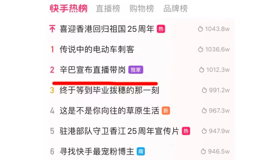 辛巴宣布将直播带岗后,话题迅速上快手热搜