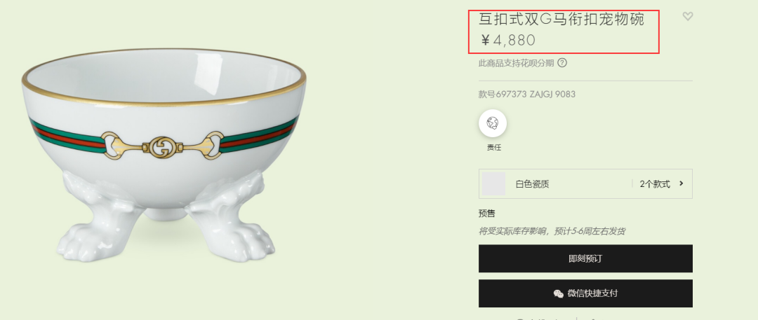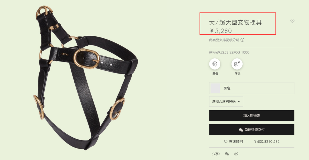 再来品品大型宠物挽具,价格同样是童叟无欺的5000多块。GUCCI你可真“刑”,能不能栓住狗我不知道,但买了我一定会栓Q!