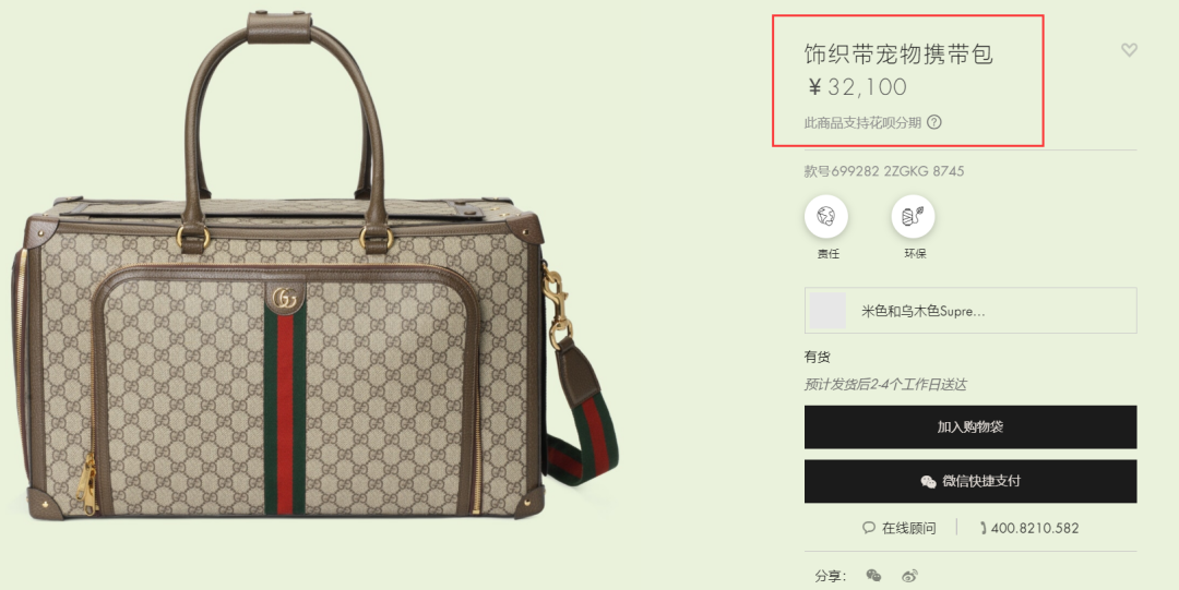 也就是说狗狗睡一晚觉,就要破费7万块!真·太狗了,才发现原来我连狗窝都睡不起。俗话得好,“金窝银窝,不如狗窝”,终究是我年少肤浅了。我只想唱:哭泣哭泣就好(静静地发出没钱买不起的声音)当然如果你被7万劝退,压缩空间挤一挤将就,也未尝不可。贴心的GUCCI给你留一手,这3万块的宠物携带包可还行?