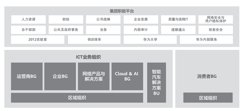 在华为最新的年报中,业务架构发生了很大的变化,消费者BG改成了终端BG,主要板块从六个变为了八个。其中新增海思、数字能源两个一级部门。