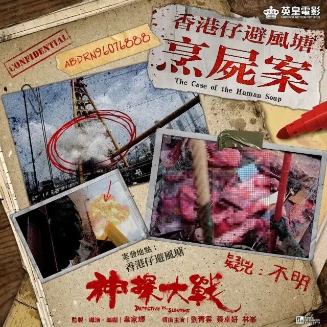 而据介绍,《神探大战》中汇聚了“飞尸案”、“浮尸案”、“烹尸案”、“魔警案”、“屠夫案”等案件,以下这一系列的海报以记录的形式呈现,让观者更有代入感。