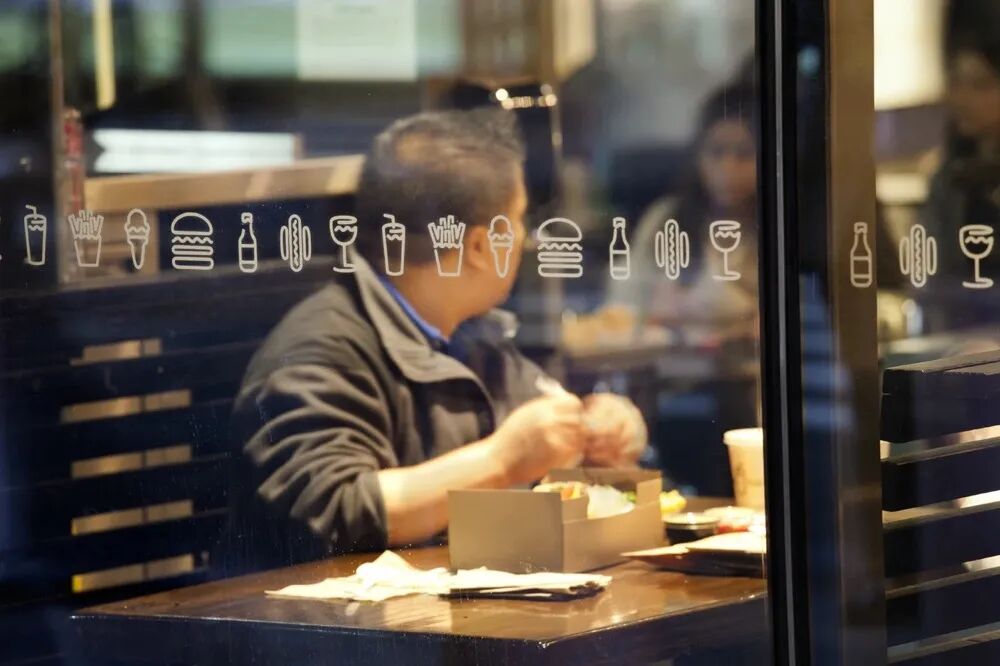 无论 Logo、字体、颜色、餐厅装潢、员工服、看板、菜单到餐巾纸,都完整地展现出餐厅的现代感与年轻活力。