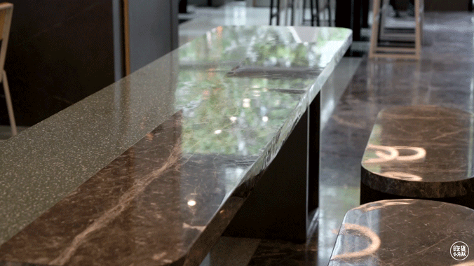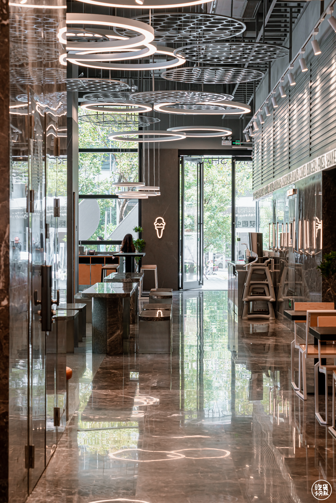 门店设计上,室外与自然交融,室内以浮岛为设计灵感,好一个休闲和典雅的完美结合。