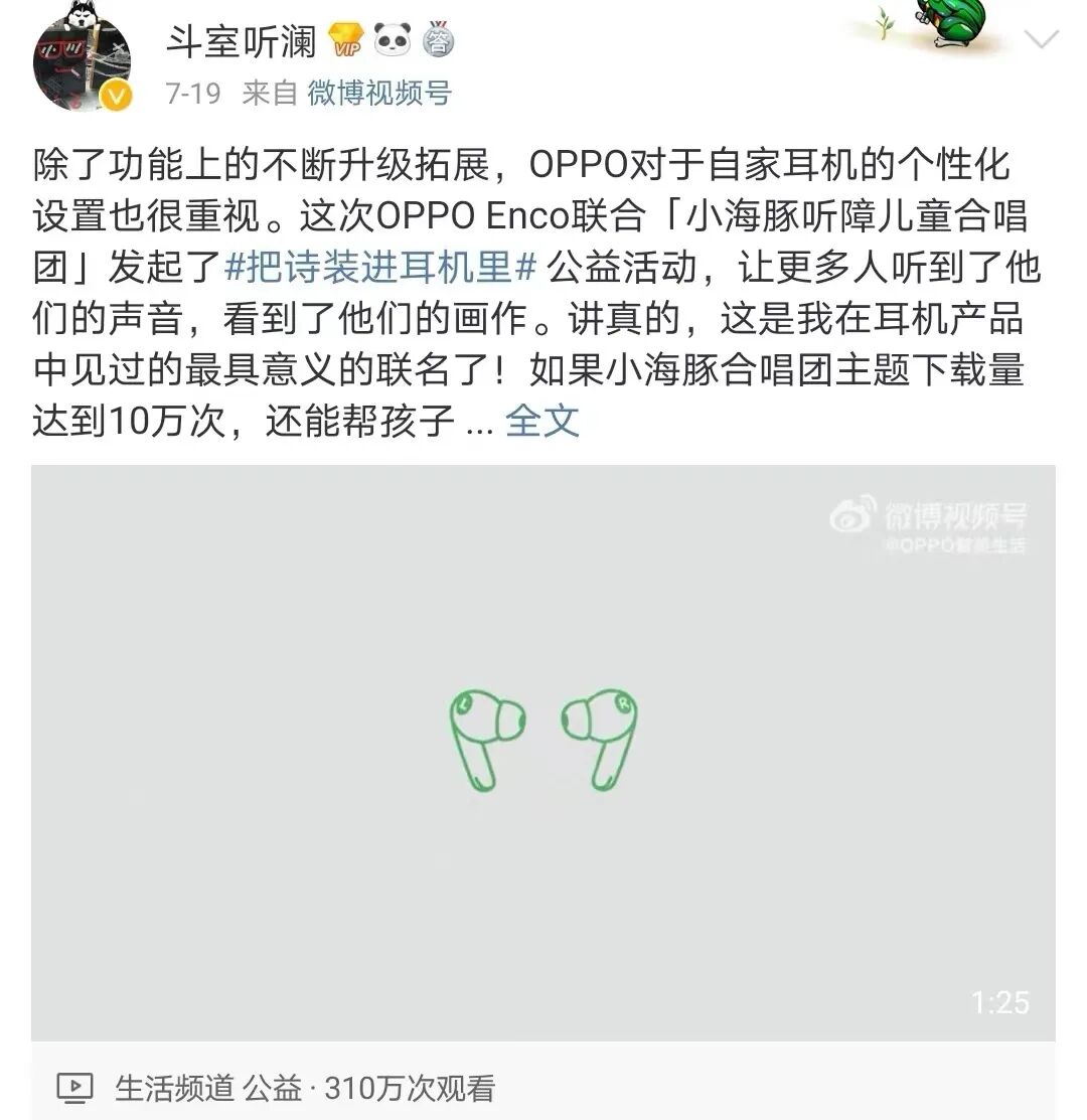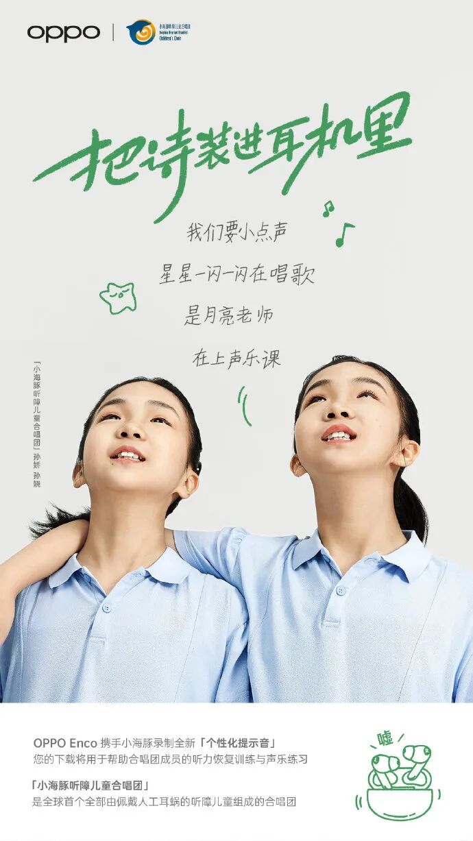 此次OPPO把诗装进耳机里,让小海豚合唱团为听障儿童发声,延续公益事业的长期主义路线,再次彰显OPPO 践行公益事业的品牌责任意识。