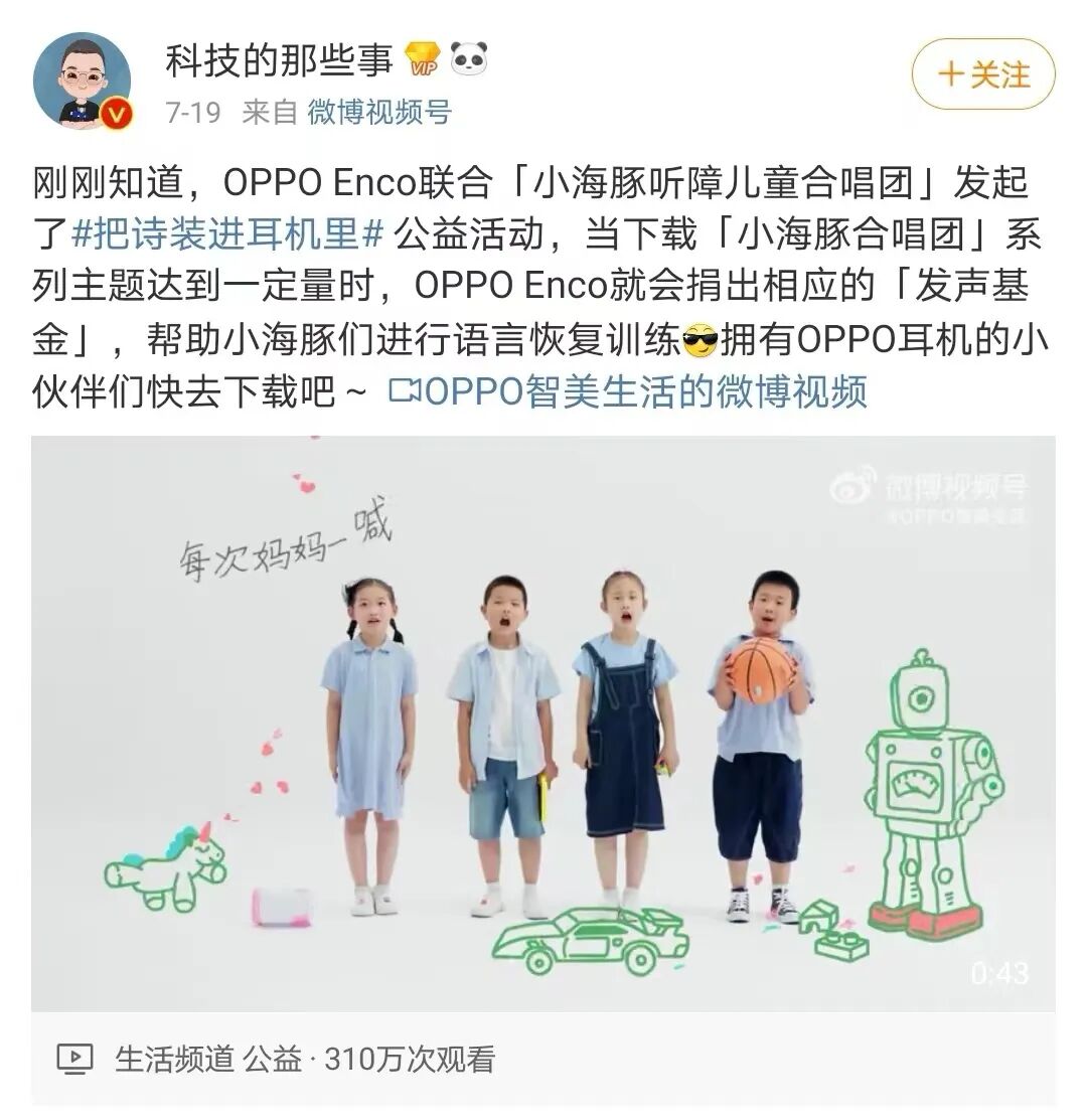最近,OPPO Enco耳机联合「小海豚听障儿童合唱团」发起暖心公益活动,借助品牌的力量,带领大众走进听障儿童,聆听生命的回响。