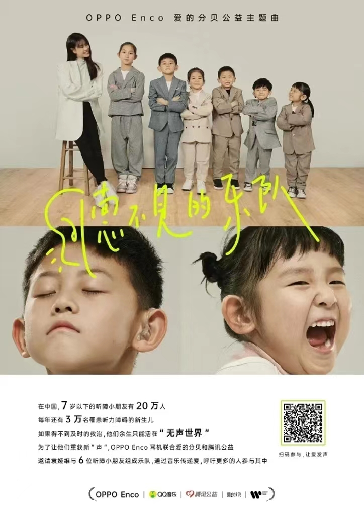 去年,OPPO 邀请唱作人袁维娅与热爱音乐的听障儿童组建了一支「听不见的乐队」,以特别的方式演绎《听见日出》公益主题曲,让「听不见」的孩子沉浸美好的音乐世界。