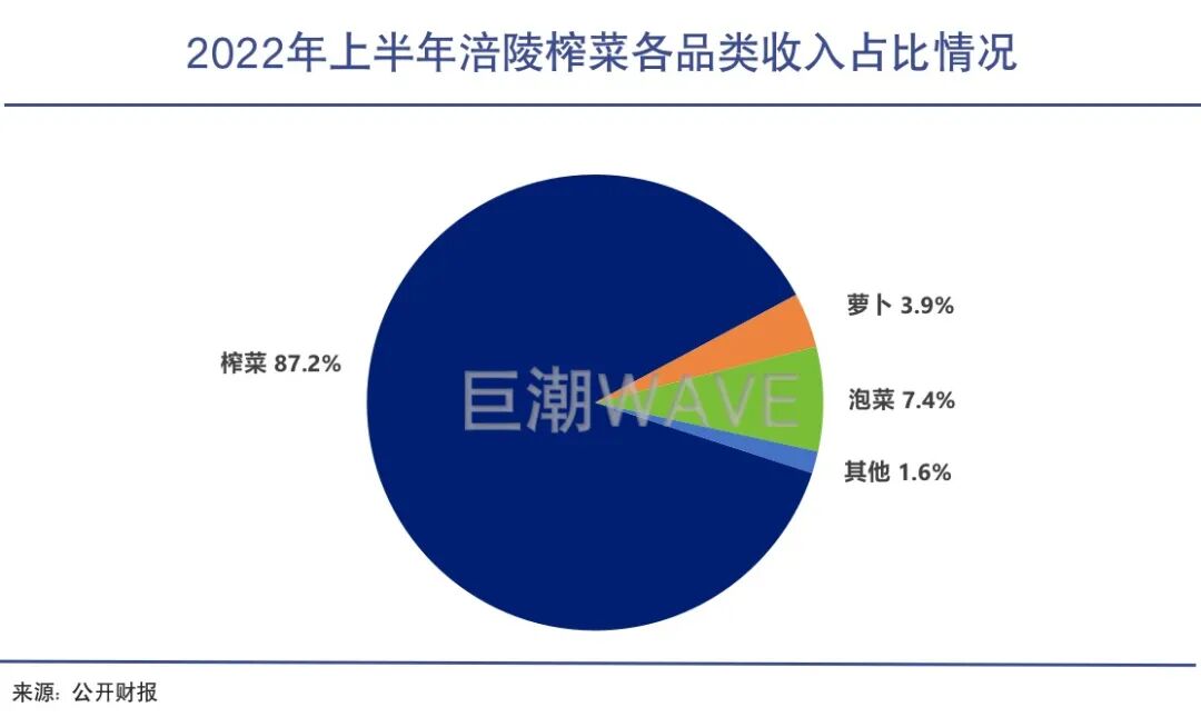 财报显示,自2022年,涪陵榨菜的业务规划已经分为了九大销售推广品类,分别为:乌江榨菜、乌江下饭菜、乌江调味菜、乌江泡菜、乌江海带丝、乌江榨菜酱油、惠通下饭菜、蜀留香豆瓣酱及休闲零食。