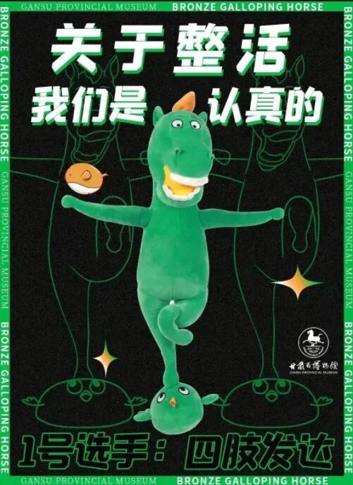 疫情让各大博物馆营收遇阻不得不自寻生路,甘博在这个绿码为贵的当口把甘博特色铜奔马和绿码联系起来,“绿马踏飞燕”成了“绿码踏肺炎”,文化创意先创在了文字上,甭管创意够不够,意头上先拿下一分。