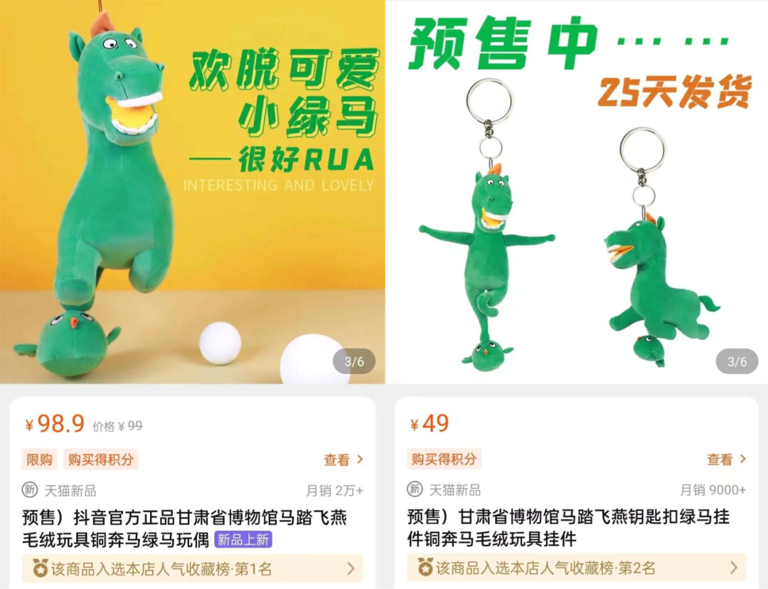 但就是这样一只玩偶,竟然成为甘肃省博电商平台收藏榜第一名,月销高达20000。