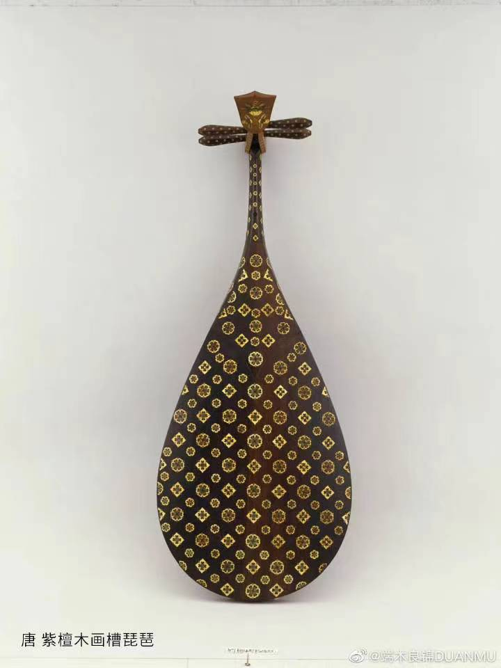 诞生于唐朝的紫檀木琵琶,琵琶上的纹路结构不免让人联想起某个国际知名奢侈品牌的经典老花纹样。