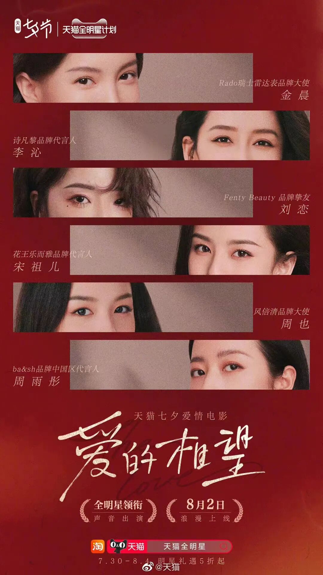 一年一度的七夕,不单是一众情侣秀恩爱的日子,同时也是品牌借势的大好时机,依托这一节点下的流量东西,最大程度上收割用户注意力,以此达到品牌形象与声量的双向提升。据说喜欢一个人的眼神是藏不住的。今年七夕,天猫全明星计划发起「这个礼物有点故事」话题讨论,征集关于眼神的爱情故事,推出七夕爱情电影《爱的相望》。Rado瑞士雷达表品牌大使金晨、诗凡黎品牌代言人李沁、Fenty Beauty品牌挚友刘恋、花王乐而雅品牌代言人宋祖儿、风倍清品牌大使周也、ba&sh品牌中国区代言人周雨彤化身「天猫爱情声援官」倾情献声,讲述浪漫七夕爱情故事。这支影片包含了日常、笃定、沉溺、相思、期待、热望六种美好的“爱的眼神”,天猫洞察到“眼神是爱的传感器”,以此为基点呈现不同的爱情故事,勾起大众内心共鸣和向往。「天猫全明星计划」是天猫孵化的长线IP,以联合众多品牌及其代言人的形式开展活动,七夕爱情电影《爱的相望》侧面也是对IP赋予更多关注度及流量价值的过程。这个七夕,天猫将眼神与爱通过礼物和故事相连接,集结6个品牌及其代言人以声音演绎爱情故事,为爱发声,在感性之中传达出品牌暖心底色。从营销层面上说,《爱的相望》中每一种“爱的眼神”都洋溢着特别的甜蜜,更为特别的是天猫邀请金晨、刘恋、宋祖儿、周雨彤等一众明星声音出演,为这支影片额外加了几分甜度。