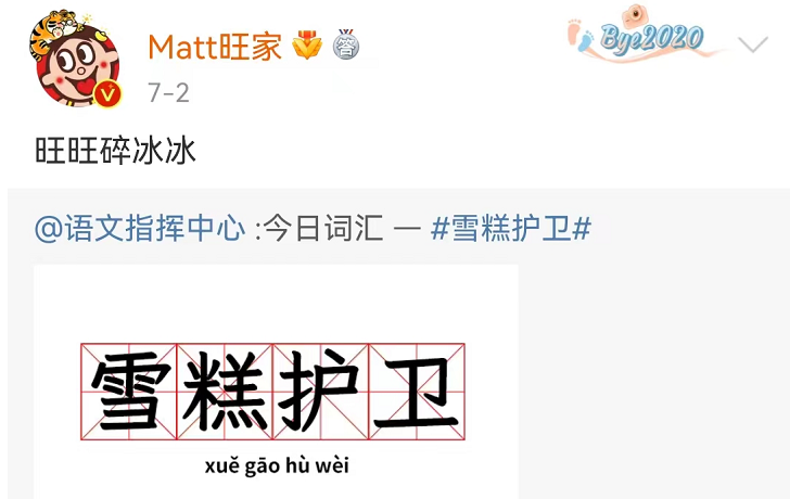 而起因就是台湾事件,旺旺是台企,一下子被网友盯上了。后来又被扒到原来旺旺家的二公子,一直在默默给台湾事件发声,于是引发全网报复性围观。这事还要从一条微博说起,疑似旺旺员工哭诉,因为是台企被抵制,还让大家前往二公子微博,字里行间都是委屈巴巴。多少人第一次围观旺旺二公子@Matt旺家,还以为是旺旺的官方运营?但这可是旺家二公子的私人号,二公子是真能处,有话是真敢说。化身白雪公主,先是形容某人为老巫婆,二次稳定发挥暗示酒店闹鬼,搭配头像一起看,在内涵谁我不说。如果还有人没看过,旺旺形容美丽国是猪这事,我也会伤心的OK?第一次觉得怼人蛮好。当然旺旺不是因为蹭热度才发声,而是一直把“中国旺旺”刻进DNA里。旺旺是台企,但2008年在港股上市时,名字就是:中国旺旺!图源:圈内妹妹