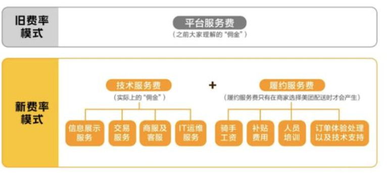 去年,在监管及商家降佣呼声的热潮下,美团开展了一场佣金“透明化改革”,将原先按比例收取的佣金,拆分成技术服务费和履约服务费两部分,并通过时间分段计费和距离分段计费的方式对履约服务费进行约定。