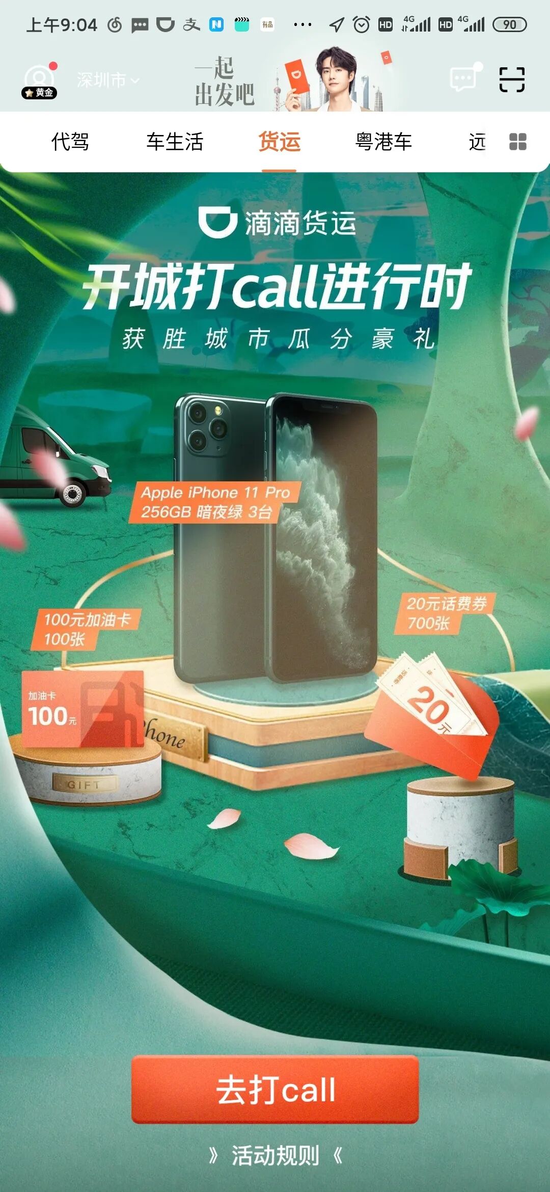 6月8日凌晨,滴滴出行App顶部导航栏更新出了“货运”板块,并同步在杭州、广州、北京、天津、深圳等10个城市上线了“开城打call进行时”活动。