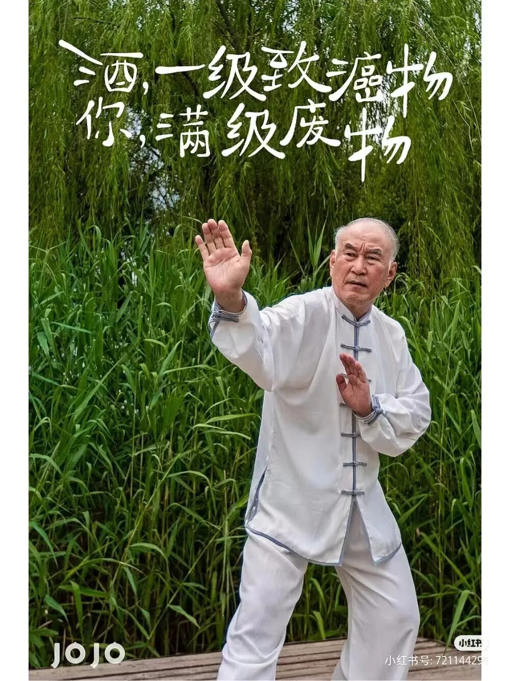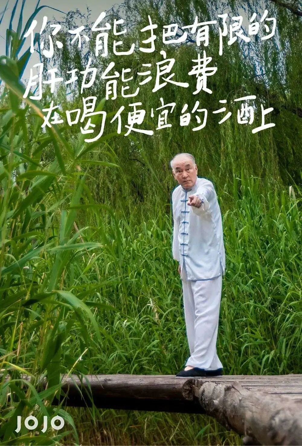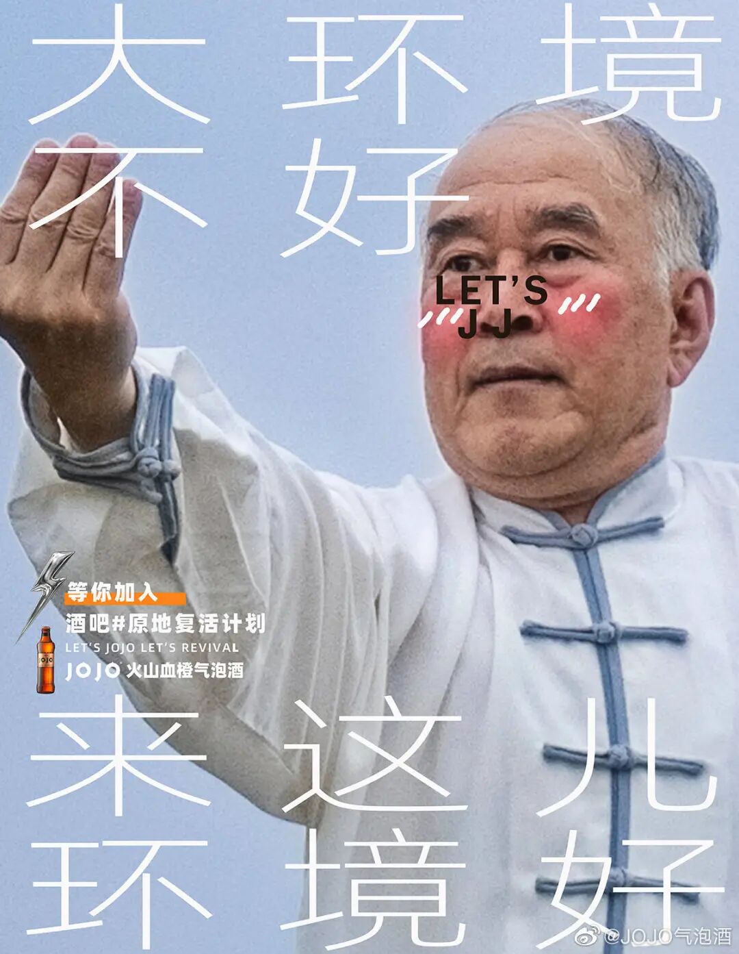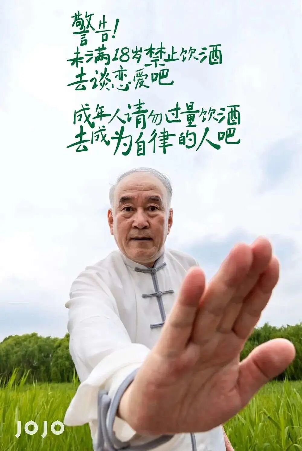 除了这组海报,此前JOJO气泡酒还找来一位爷爷拍摄了一组文案海报,以一个长辈严肃且不失幽默的风格表达对于饮酒的建议。满版海报上大爷卖力演出,用两个“鼻孔”呈现品牌Logo,这反差萌真真是绝了。