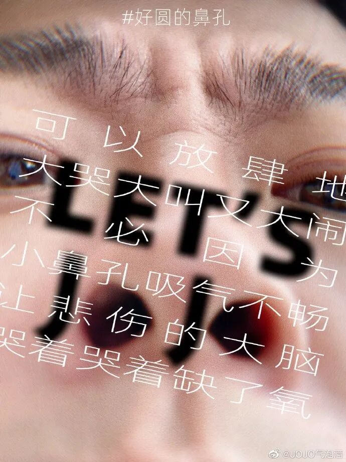 要说的酒文案谁比较牛,大家肯定都会脱口而出“江小白”,虽然如今的江小白少有出圈的案例,但曾经江小白因文案的走心而屡屡刷屏,大家还是印象深刻,并且一致认可的。后来红星二锅头凭着年岁和悠久的历史底蕴紧随其后,也出了一系列扎心文案,炸翻了一帮中年人的朋友圈,后续也便没了声音。最近,一个主打年轻人的气泡酒品牌—JOJO凭借搞笑的创意文案火了!除了文案,JOJO的视觉创意也同样让人赞叹,你们能想象用鼻孔做出来的海报吗......