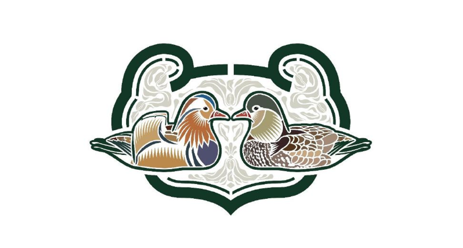而LOGO置于门口顶部,风格非常匹配,呈现出一种鸳鸯栖息在屋檐上的意境。