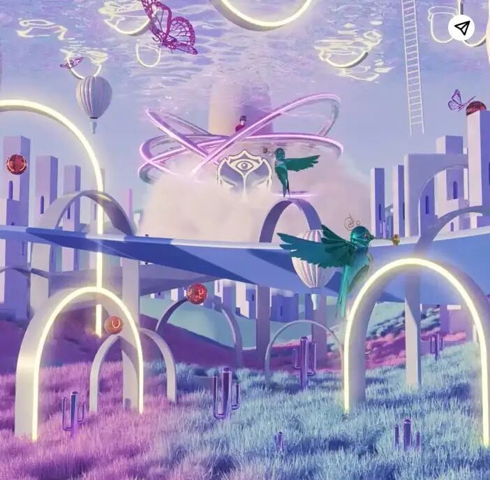 以“梦境”为主题,设计师通过3D质感元素来营造对梦的理解。在配色上也是采用了梦幻的蓝紫色调呈现。从宣传海报来看,打造“穿越门”的造型,并结合脑洞大开的元素,很符合梦的虚幻感。