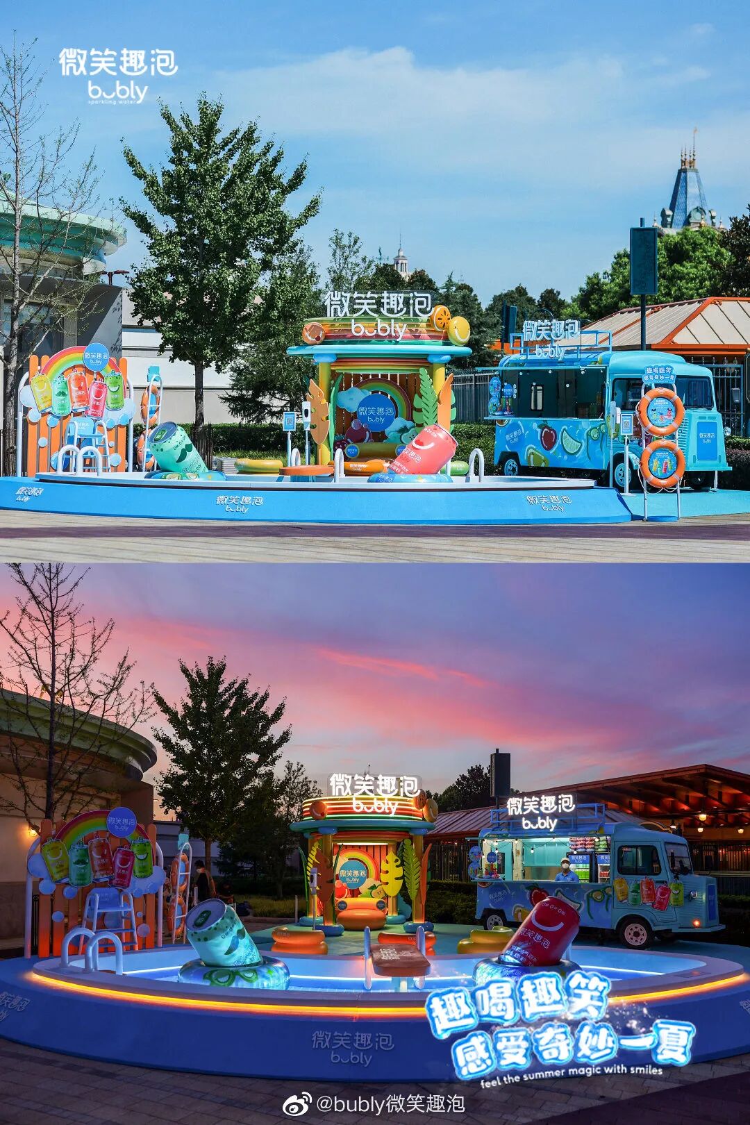 营销没有“暂停键”,bubly微笑趣泡(以下简称“微笑趣泡”)感受到消费者的细节需求,也观察到了大市场环境的微妙契机,消费者需要走到线下,重新建立起人与人之间沟通。于是在夯实线上流量之余,微笑趣泡以线下为突破口,选择在这个夏天,于迪士尼小镇打造了一个缤纷夏日体验空间,为2022年这个夏季注入一份清凉活力。用这种方式,将夏日的热情,与微笑趣泡的品牌DNA完美融合,打造了一场限时的夏日欢乐氛围,激发颜值经济与消费者的深度共鸣。