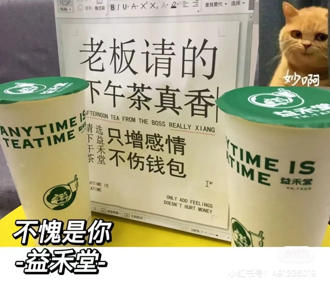 谁有钱?老板最有钱。但又不好直接提,你看益禾堂多贴心。帮你们设计了暗示神器,拿着照片给老板看,你说精明的老板他不懂吗?如果不懂,就是太精明。