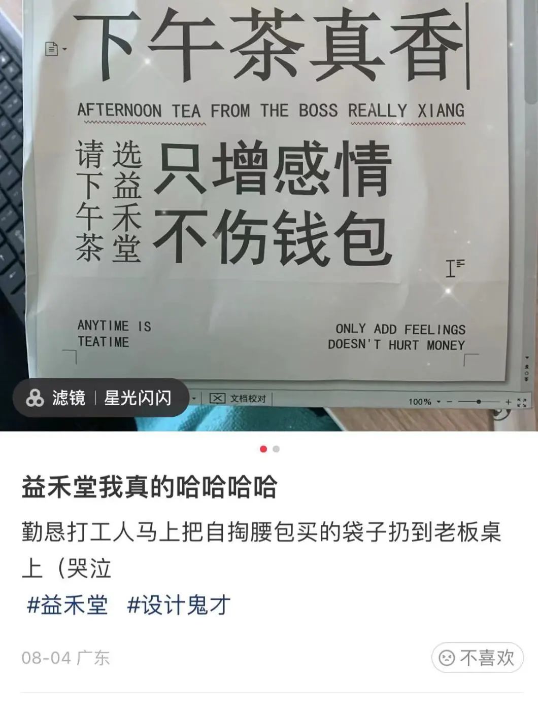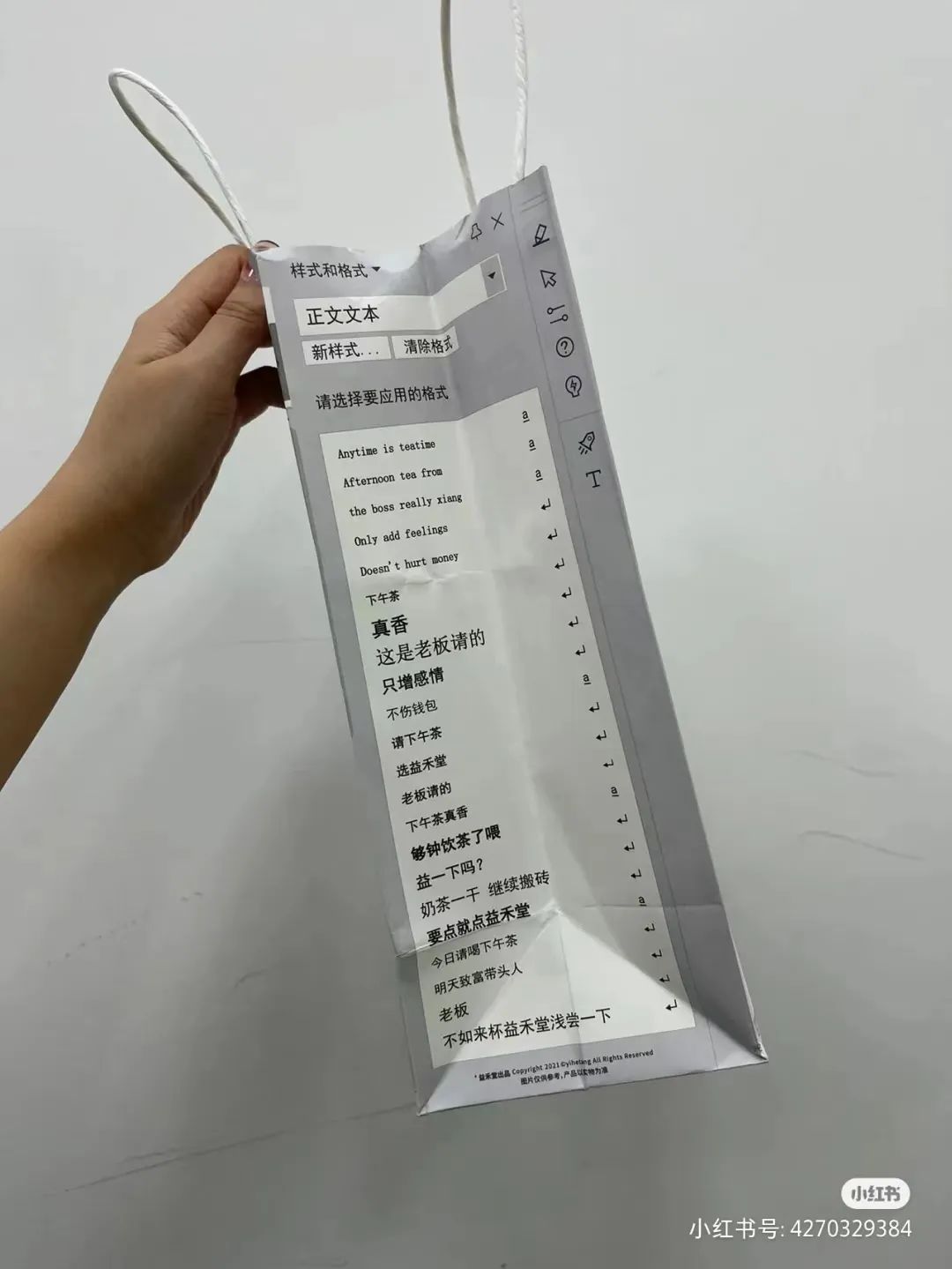 最近,小红书上一则关于益禾堂手提纸包装袋的帖子吸引了我。
