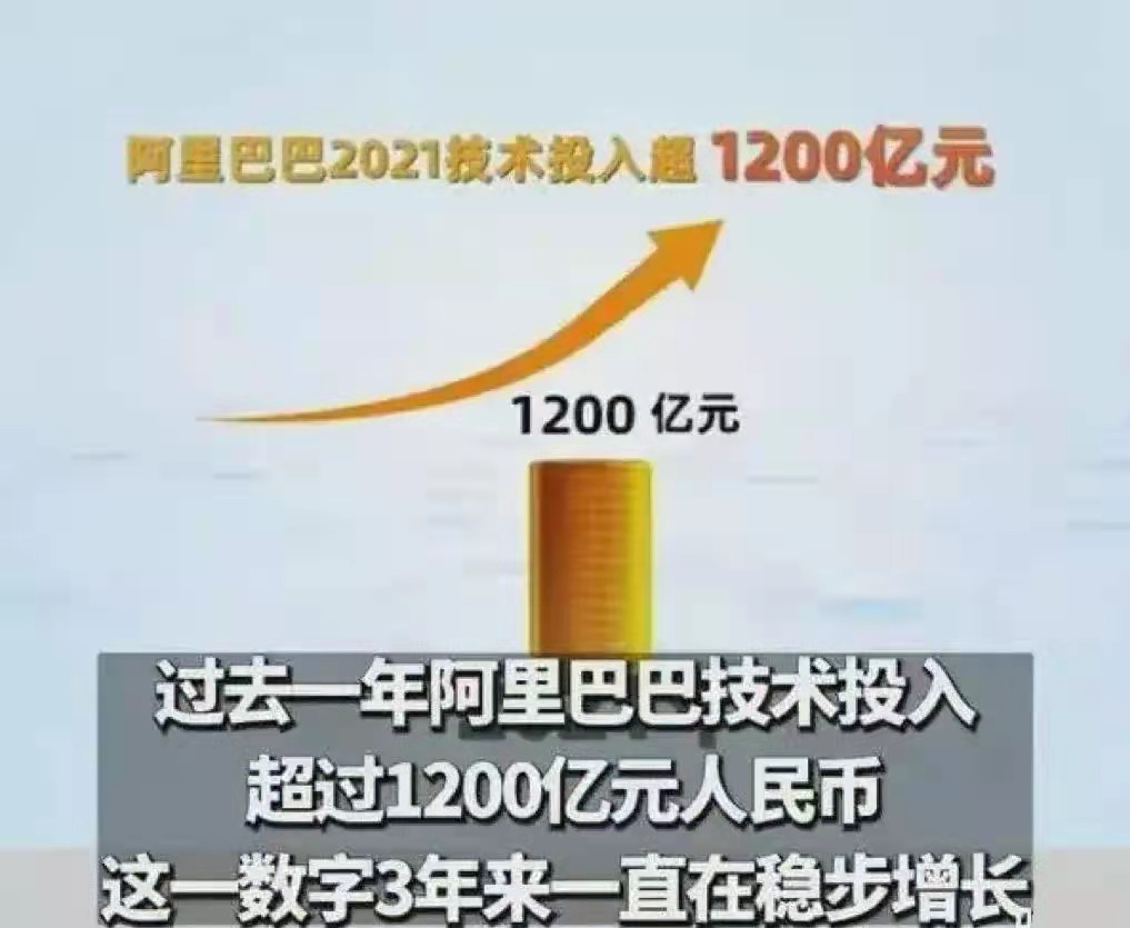 利润下滑的背后,很多人同样忽视了,阿里一年投入了超1200亿在科技技术研发上,规模已仅次于华为。
