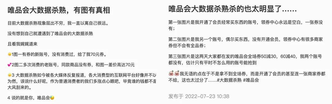 黑猫投诉平台以及社交媒体平台上,不乏消费者对唯品会“杀熟”的声讨,去年,唯品会还曾多次因违反互联网反垄断相关法规被罚款登上热搜,原因包括先提价再打折、虚假促销、虚假宣传等问题。