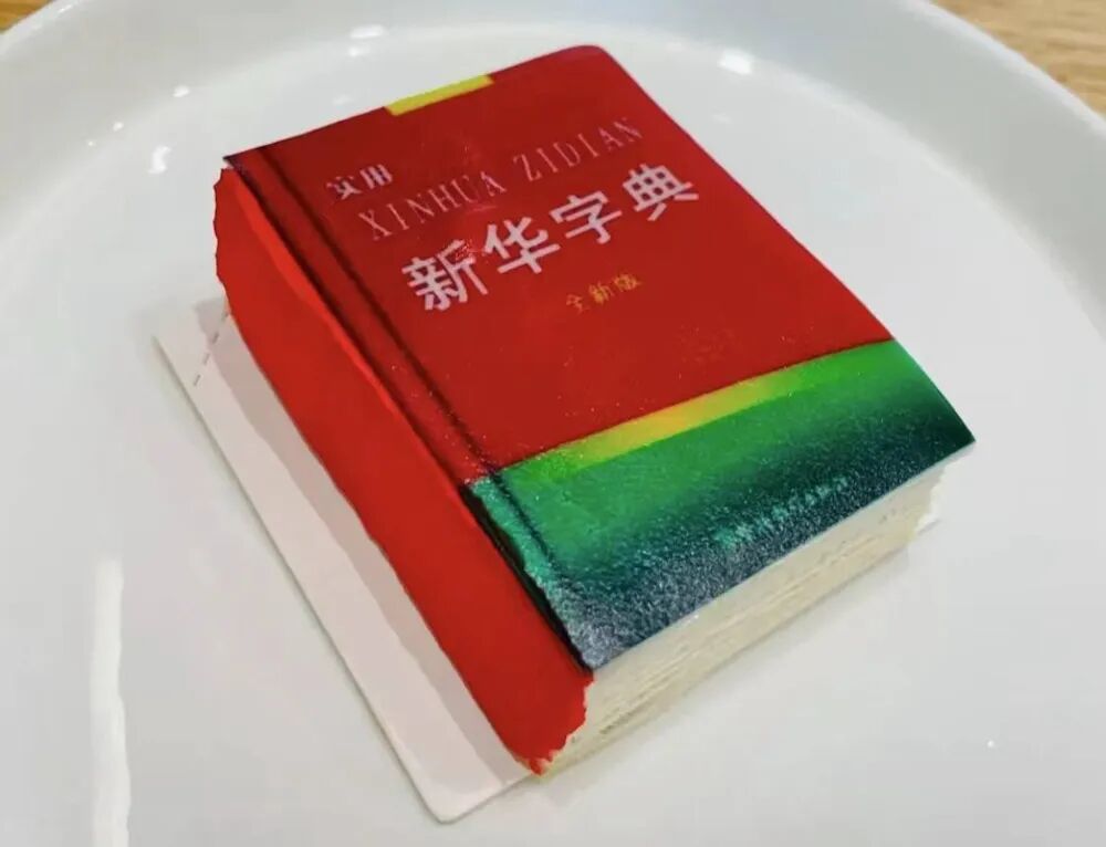 位于东四北大街的且慢cafe咖啡馆,招牌是一款新华字典芝士千层。表皮是仿真的经典红皮新华字典样式,内里由芝士奶油与千层皮叠落。