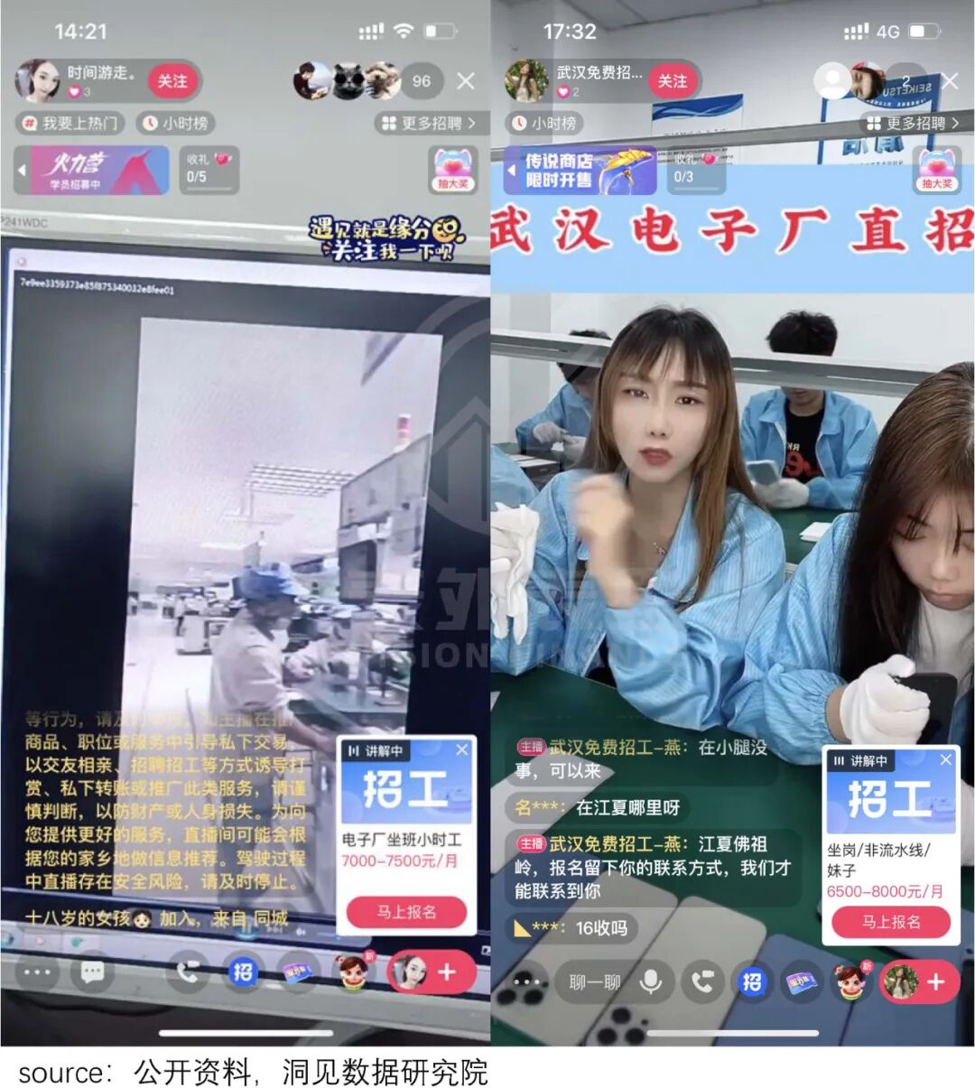 直播间内,对招工要求的介绍,也像产品带货那样,全方位直观呈现——薪资、食宿、通勤等老铁们关心的问题,一一阐述,工厂工作环境也都直播展示。